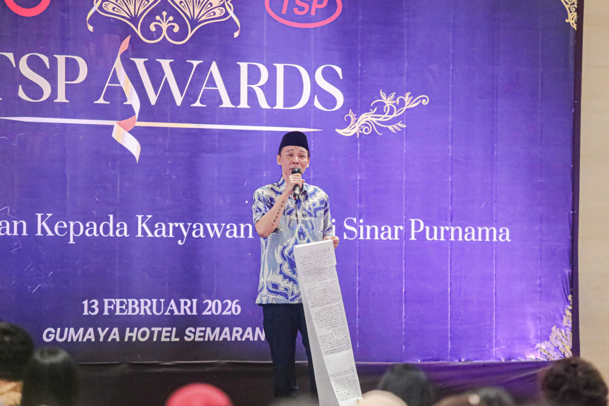 Suasana hangat dan penuh kebanggaan menyelimuti Ballroom lantai 2 Gumaya Hotel saat TSP Awards 2026 resmi digelar. Malam itu bukan sekadar agenda tahunan, tetapi perayaan atas perjalanan panjang, kerja keras, dan pencapaian luar biasa yang diraih bersama oleh seluruh keluarga besar PT Tri Sinar Purnama. Ratusan undangan yang terdiri dari Founder, jajaran Direksi, pimpinan divisi, Karyawan dan perwakilan Grup hadir dalam satu rasa yang sama, bangga menjadi bagian dari pertumbuhan perusahaan.