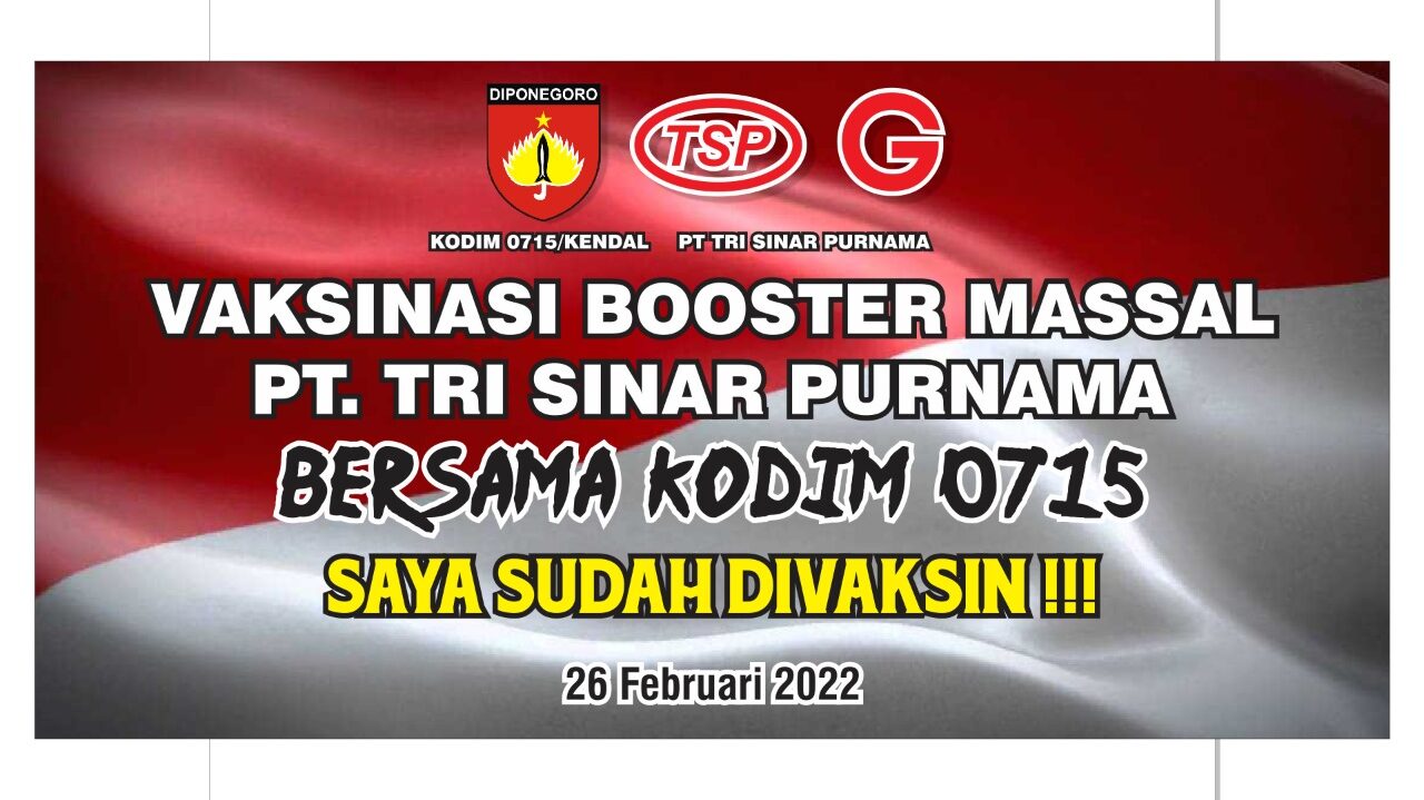 Dalam rangka mensukseskan program percepatan vaksinasi covid-19, PT Tri Sinar Purnama bekerja sama dengan Kodim 0715 Kendal akan mengadakan kegiatan vaksinasi covid-19 booster secara masal. Adapun informasi selengkapnya sebagai berikut.